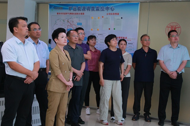 调研组一行实地参观了旷远能源SCADA调控中心,通过系统演示、案例讲解等形式,详细了解人工智能在燃气地理信息可视化管理、运行调度智能优化、气量分析精准决策、应急抢险响应、全域视频监控、工程全流程管控、客户服务智慧升级等核心环节的创新应用和成效。
