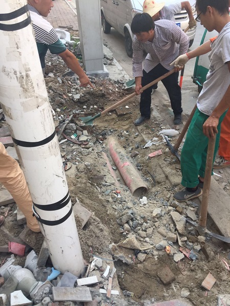 2017年7月15日上午8点39分,旷远能源管网部巡线员谢海阳在对华林工业园区支四路巡线过程中,发现空气中弥漫着一股臭味,多年从业经验使他立刻引起警觉,通过手持式可燃气体检漏仪确定了该区段存在燃气泄漏。他立即对现场进行警戒,并及时上报管网部经理林元琦。林元琦考虑事故隐患重大,影响范围广,立即上报公司领导并启动应急预案。旷远能源客服部、调度监控中心、工程管理中心、宏盛市政工程有限公司等多方迅速联动。管网部经理林元琦第一时间组织力量赶赴现场处理,他凭借多年的管网应急处理经验,迅速锁定漏气区段,通过取点检测分析,准确地找出了管线漏点。顶着烈日冒着酷暑,为了及时恢复供气,旷远能源管网部和宏盛市政的应急抢修人员争分夺秒进行抢修。当天下午17点18分,更换管段焊接完毕;17点58分,冷却侧漏后恢复供气。