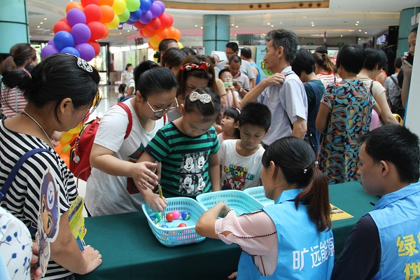 为积极响应“打造宜居港城,建设美丽莆田”的号召,进一步在莆田倡导、推广绿色环保,旷远能源于7月15日在馨宜·新天地广场举行了一场以“互动式”环保游戏体验为主的亲子嘉年华。活动以“倡导绿色环保,共建宜居莆田”为主题,使孩子们在欢乐中树立环保意识,在游戏中丰富环保知识,培养莆田的“环保小卫士”。
